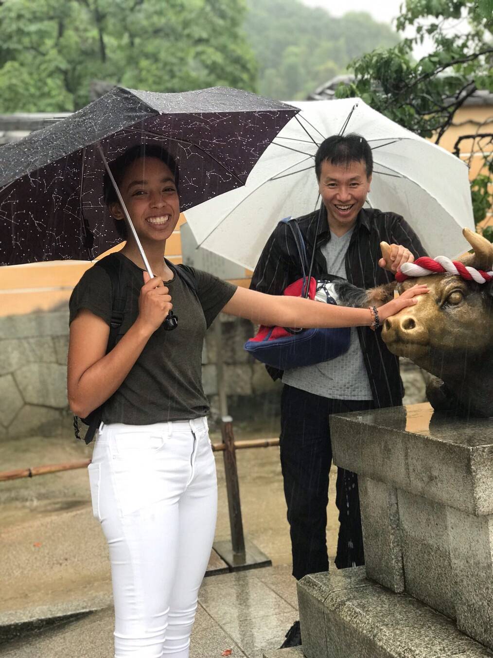 Fun experiences: By far my favorite experience was actually something I coordinated outside of the program with some friends, so I encourage people going on this trip to not be afraid to seek out some of their own adventures! I went on an incredible hike with a bunch of people from my program through the rain. It was super challenging, but well worth the breathtaking view at the top. We could see the city, the mountains, and the land for miles. Another fun experience was when I went with Genki JACS to Shikanoshima, a nearby island. The water was so clear and blue and we went to a hotel for part of the day where we had the option of onsen as well as a huge meal. My host family also took me to onsen about a week before the trip to Shikanoshima on the same day we went to the shrine. It was a very positive experience and I felt a lot less awkward than I thought I would've. I got a few curious glances being a foreigner, but everyone was pretty unconcerned and was just enjoying the relaxing experience. I'm glad I went with my host family because my host mom and sister were able to show me the whole cleansing process before getting into the water. I would highly recommend onsen to anyone going to Japan, as it was very body positive and helped me realize how unique all bodies are. Another interesting experience I had was doing some modeling! I'm biracial (African American and Caucasian) and so my tightly coiled hair was a marvel to many people in the country. I was walking in Tenjin station one day when a man asked to do my hair! So we coordinated and I brought some friends with me to his salon as a precaution and he styled my hair and we did a photo shoot! It was a lot of fun and made me feel a lot more confident in a country where I very clearly looked like no one else.